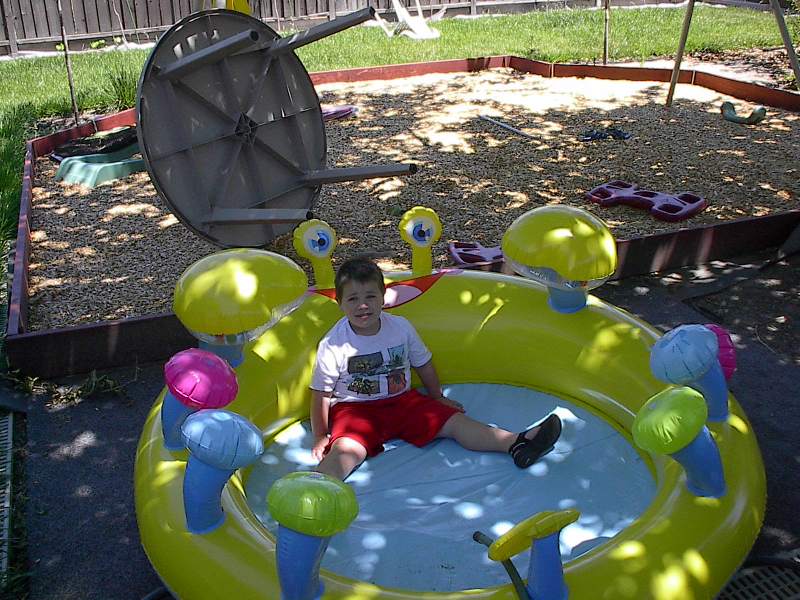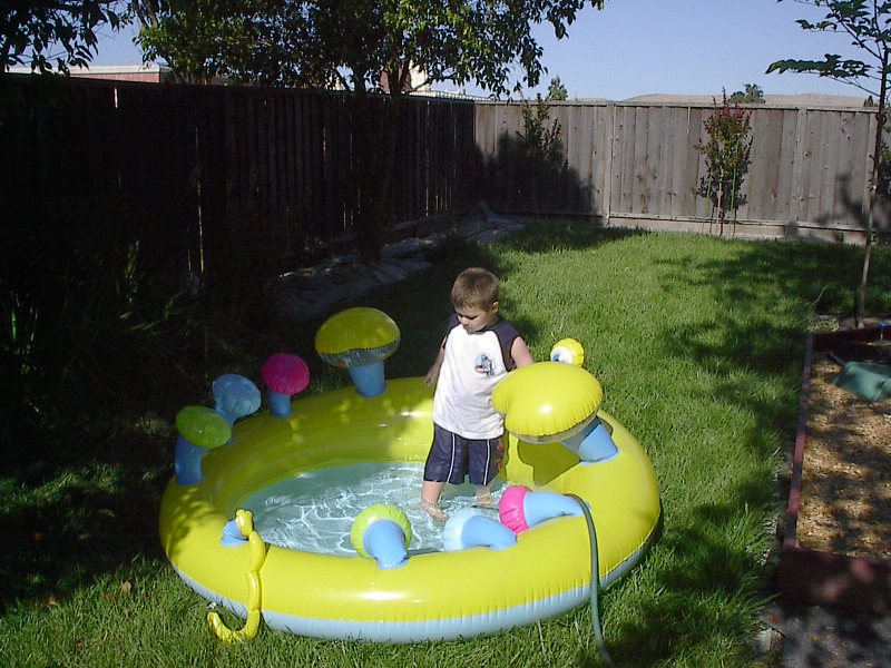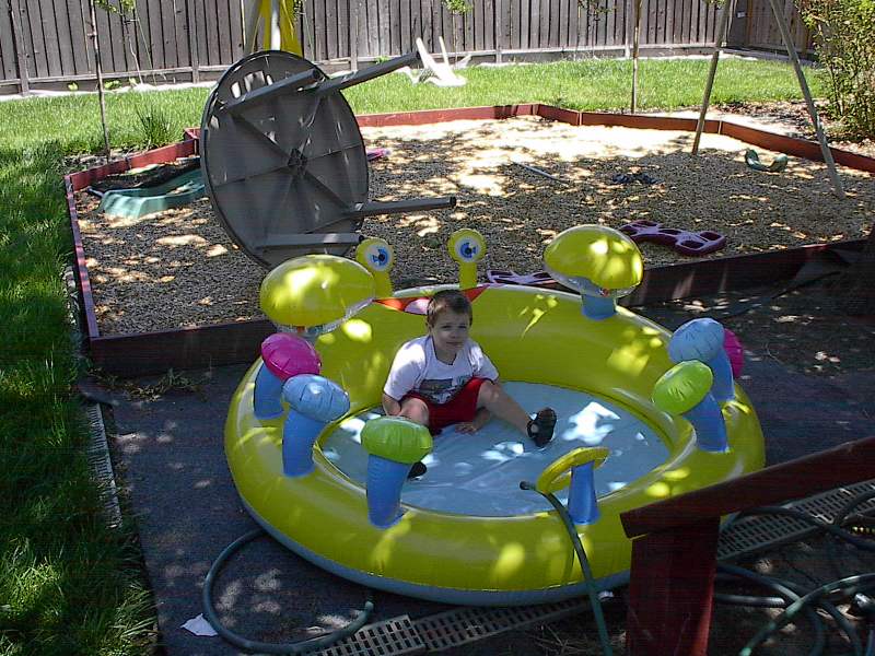 (Posted 8/29/05) Taken 6/7/05. Alex playing in his new inflatable backyard pool.