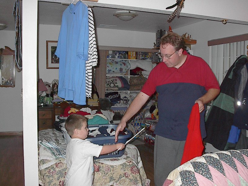 (Posted 8/29/05) Taken 6/7/05. Alex helping da-da hang shirts.