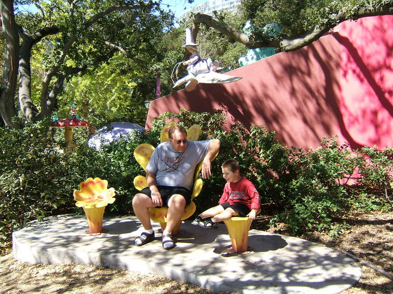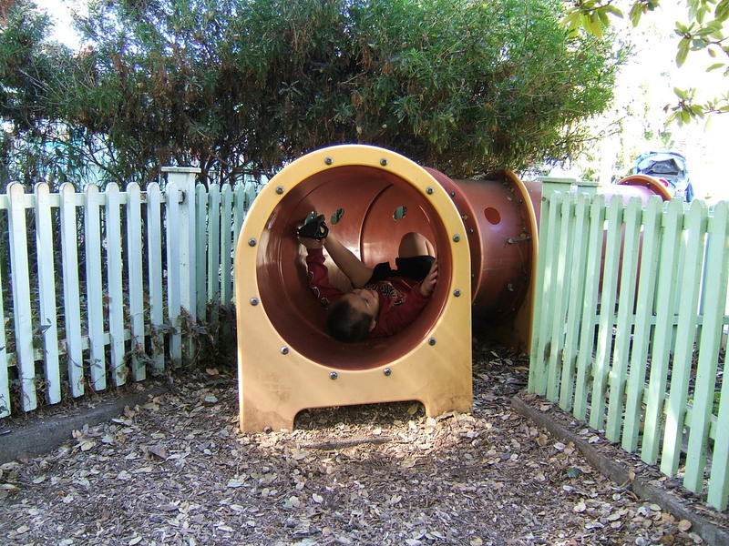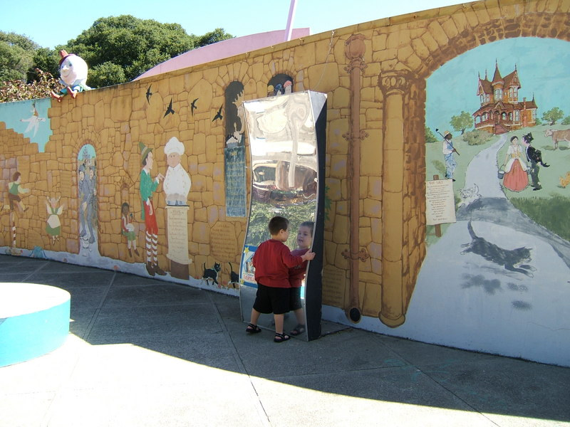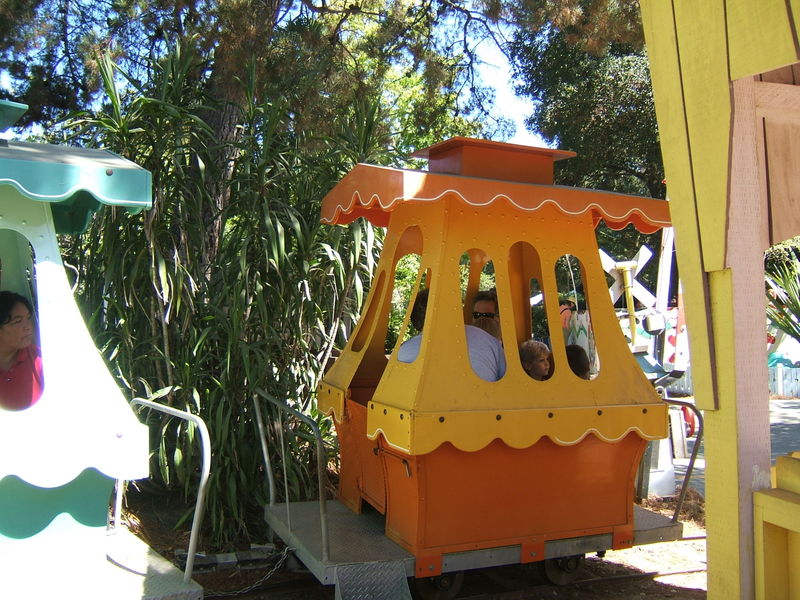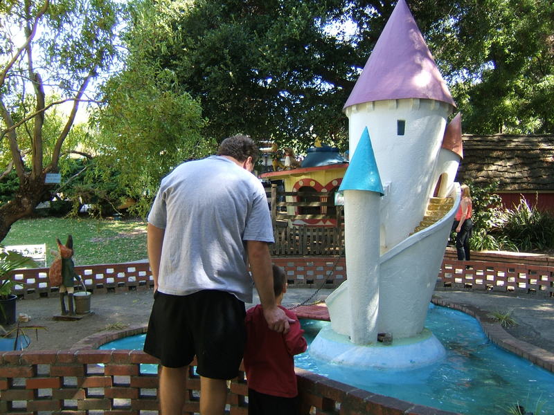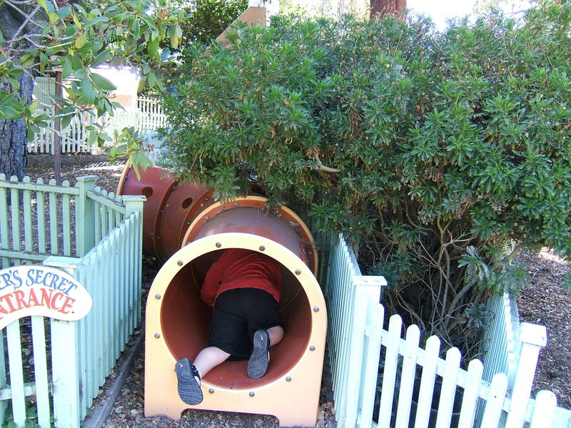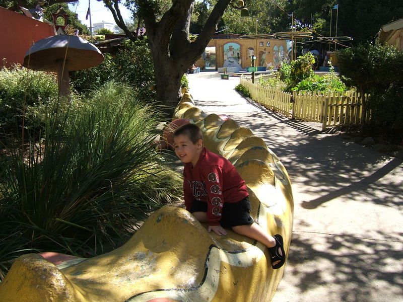 (Posted 12/21/05) Taken Sept 5, 2005. Alex's first visit to Children's Fairyland in Oakland. Taking a ride on Noah's Ark. Considering going down the clock tower slide. Saying hi to the dragon at the entrance. Trying out Peter Rabbit's secret tunnel. Taking a break from the hot African sun. I didn't think my tummy was that big! Taking a ride on the newly refurbished train ride with da-da. Laughing at us from the top of the "kids only" building when we wanted him to come down.