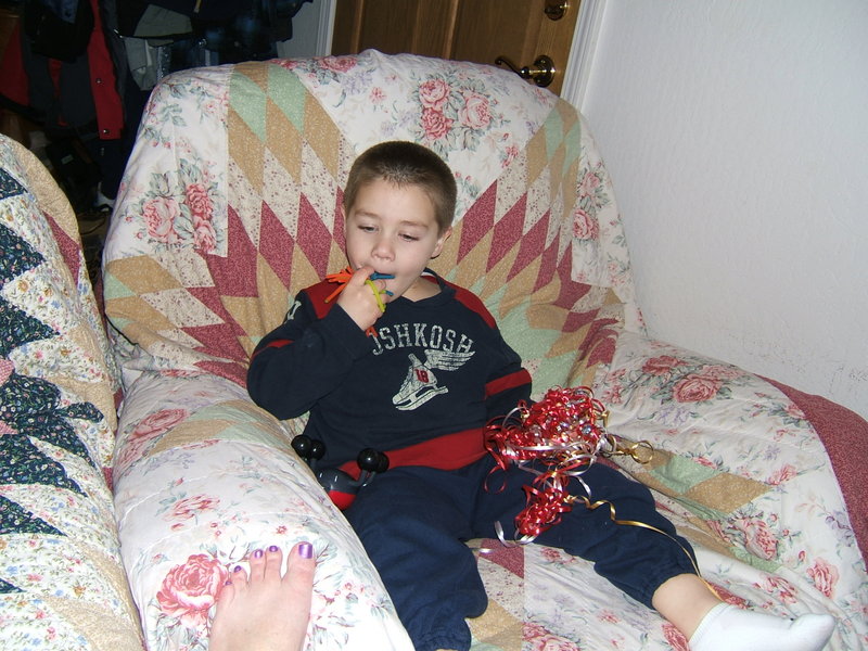 (Posted 3/15/06) Taken Dec 14, 2005. Alex trying out an early Christmas present on a rainy Livermore day.