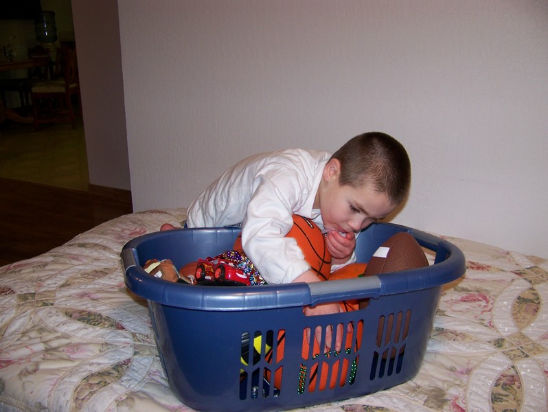 (Posted 1/27/08) Taken 12/24/2006. Alex playing with his stash of toys.