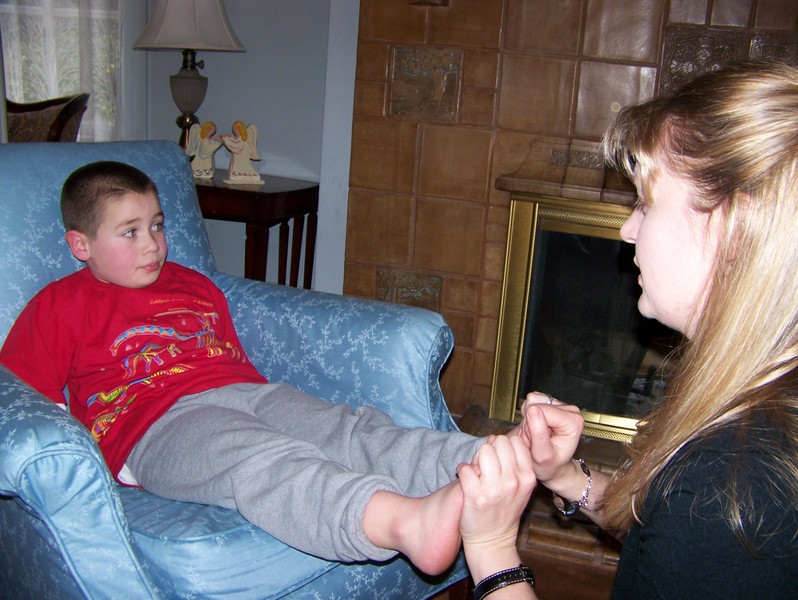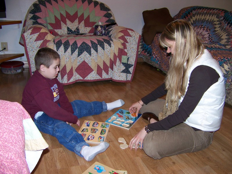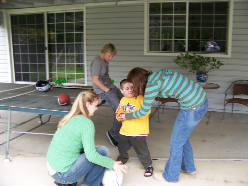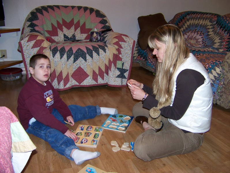 (Posted 1/27/08) Taken 2/15/2007, 4/5/2007. Alex having fun with Angela, one of his therapists. Alex and his therapy team (Becci, Angela, and Crystal, Beth).