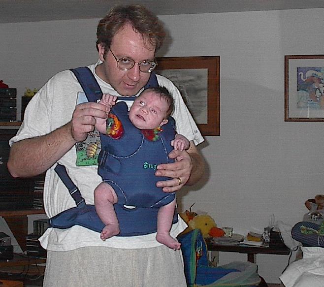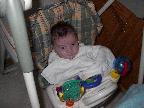 (Posted 4/8/02) Attitude adjustment if he gets out of line as a teenager. ;-) Our first attempts at solid food and his first really, really, really bad hair day.