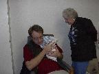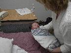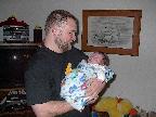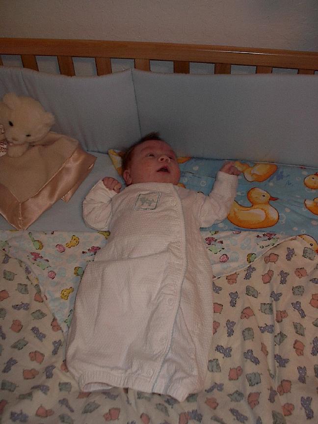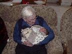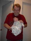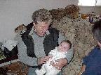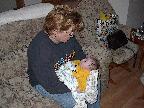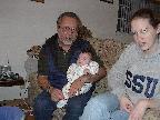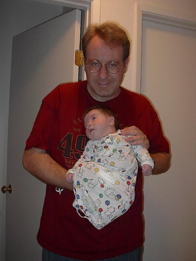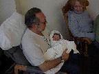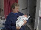 (Posted 1/31/02) Checking out dad in bed. Meeting Jeff's good friends Karl and Nora (Karl not pictured). Meeting Jeff's maternal grandparents, Bill and Thelma Takacs. (The little guy is named for Jeff's grandpa William.) Stretching for Lori's mom Margot and looking cute for Don, an old friend of Lori's family.