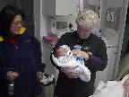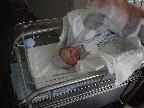 All bundled up to come home from the hospital.