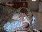 His first day in this world. Getting warmed up a few minutes after his big entrance. Visiting with Jeff's mom Laura and sister Julie. And, of course, with Lori (aka Mom).